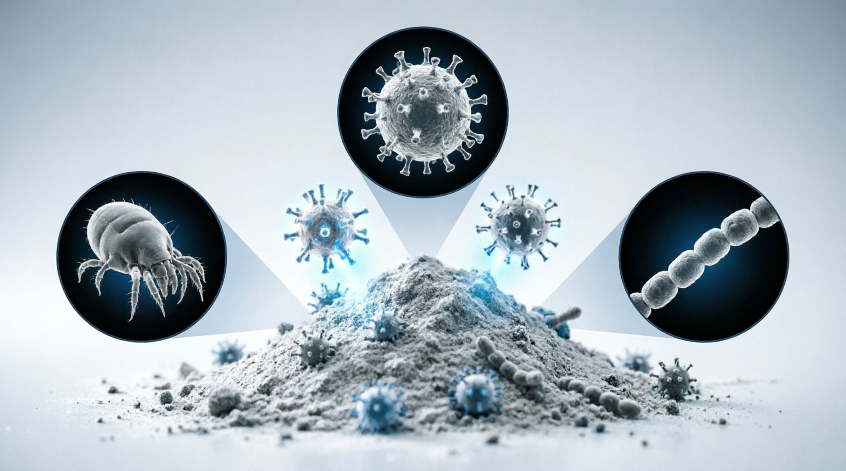 Особое внимание сейчас уделяется борьбе с пылевыми клещами. Мифы, которыми обросла информация о них, сравнимы, пожалуй, только с рассказами о жутких чудовищах. Однако пылевой клещ (как бы пугающе он не выглядел под микроскопом), сам по себе неопасен. Токсичными являются лишь продукты его жизнедеятельности. За всю свою жизнь (около 4 месяцев) пылевой клещ способен произвести экскрементов в 200 раз больше собственного веса… Для борьбы с пылевым клещем рекомендуется проводить тот же комплекс мероприятий, что и при борьбе с домашней пылью, ведь этот клещ не может жить без пыли. Есть еще одна полезная рекомендация - избавиться от перьевых подушек, заменив их на подушки с синтетическими наполнителями.