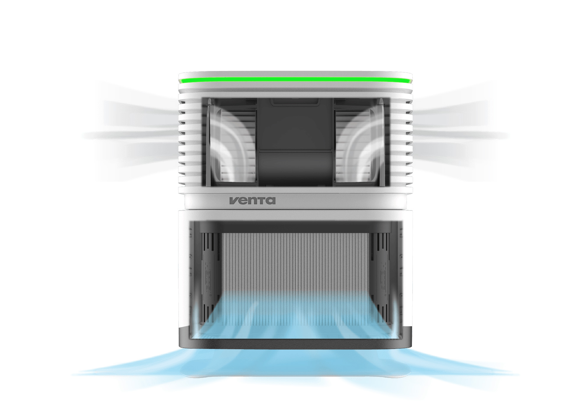 Затем он проходит через тройной фильтр HEPA13 + антиформальдегид и очищается от: вирусов, бактерий, бытовой пыли, пылевых клещей, аллергенов, неприятных запахов, летучих органических соединений, формальдегида и прочих загрязняющих частиц размером от 0,03 мкм.